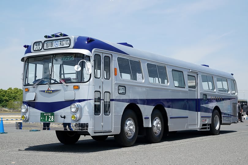 図2-10 1960年代に入ると旺盛な路線バス利用に対して全長約12m、定員110人クラスの3軸大型路線バスも登場する。旭川電気軌道の三菱ふそうMR430(1963年式)はその活躍の生き証人として保存される。