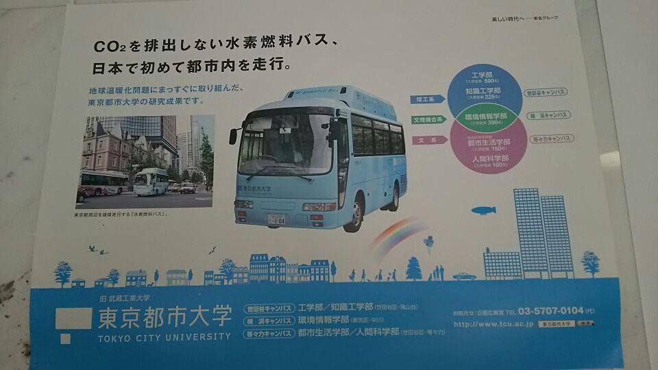 図2-24 試作当初の東京都市大学の水素エンジンバスの鉄道広告、社会の注目を浴びた。